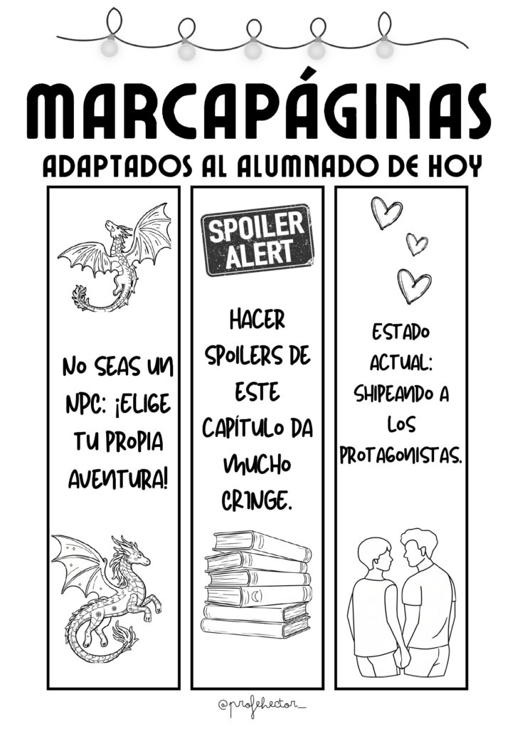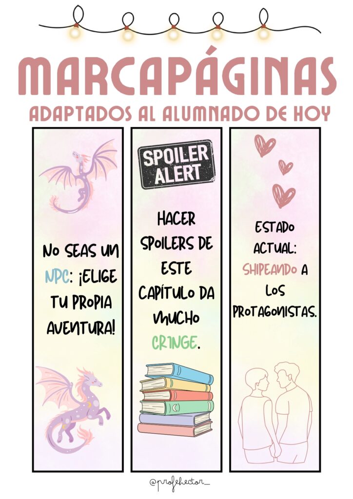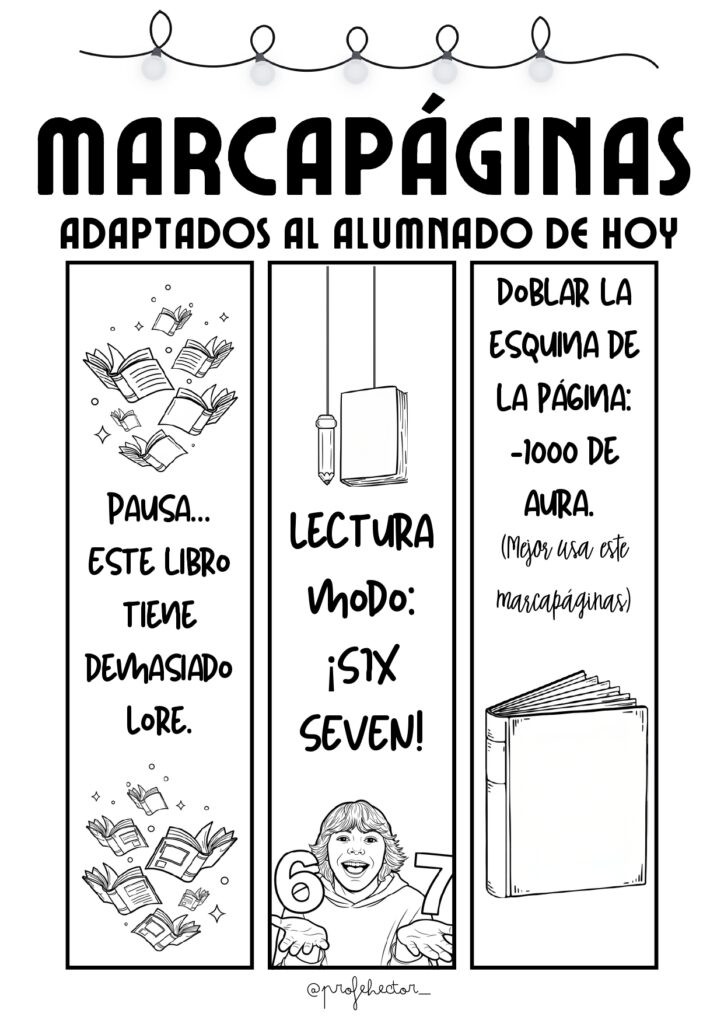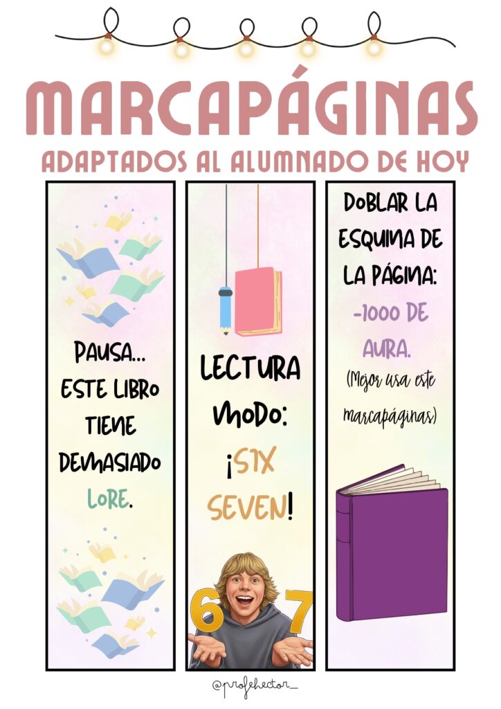 Los marcapáginas son un clásico del Día del Libro, pero… ¿y si los adaptamos al lenguaje, humor y referencias que usa el alumnado de hoy? Este recurso reúne marcapáginas modernos, divertidos y llenos de guiños al mundo digital, los videojuegos y la cultura juvenil. Perfectos para motivar la lectura, regalar en clase o acompañar cualquier proyecto literario.