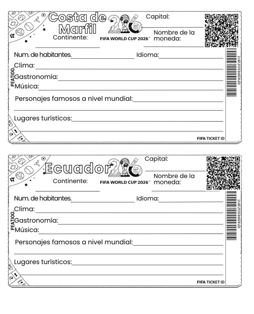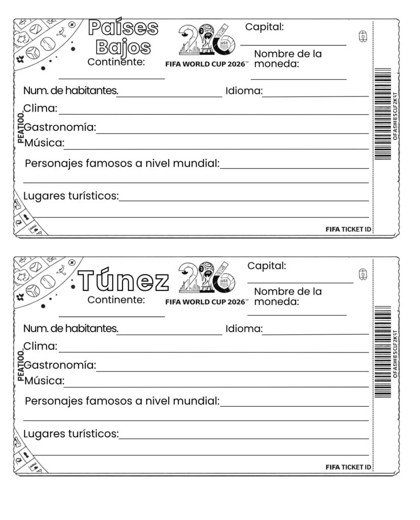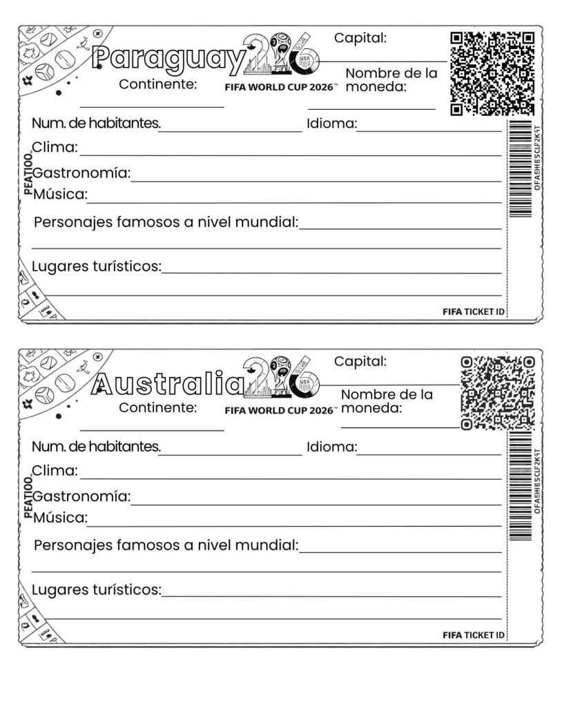 En cada boleto, los pequeños investigadores tendrán la misión de completar una «hoja de ruta» detallada del país que les haya tocado. Deberán localizar y registrar datos clave como la capital, el continente, la moneda y el idioma, pero también irán más allá explorando la identidad de cada lugar: desde su clima y gastronomía típica hasta su música, sus personajes más famosos y esos lugares turísticos que todos soñamos con visitar.