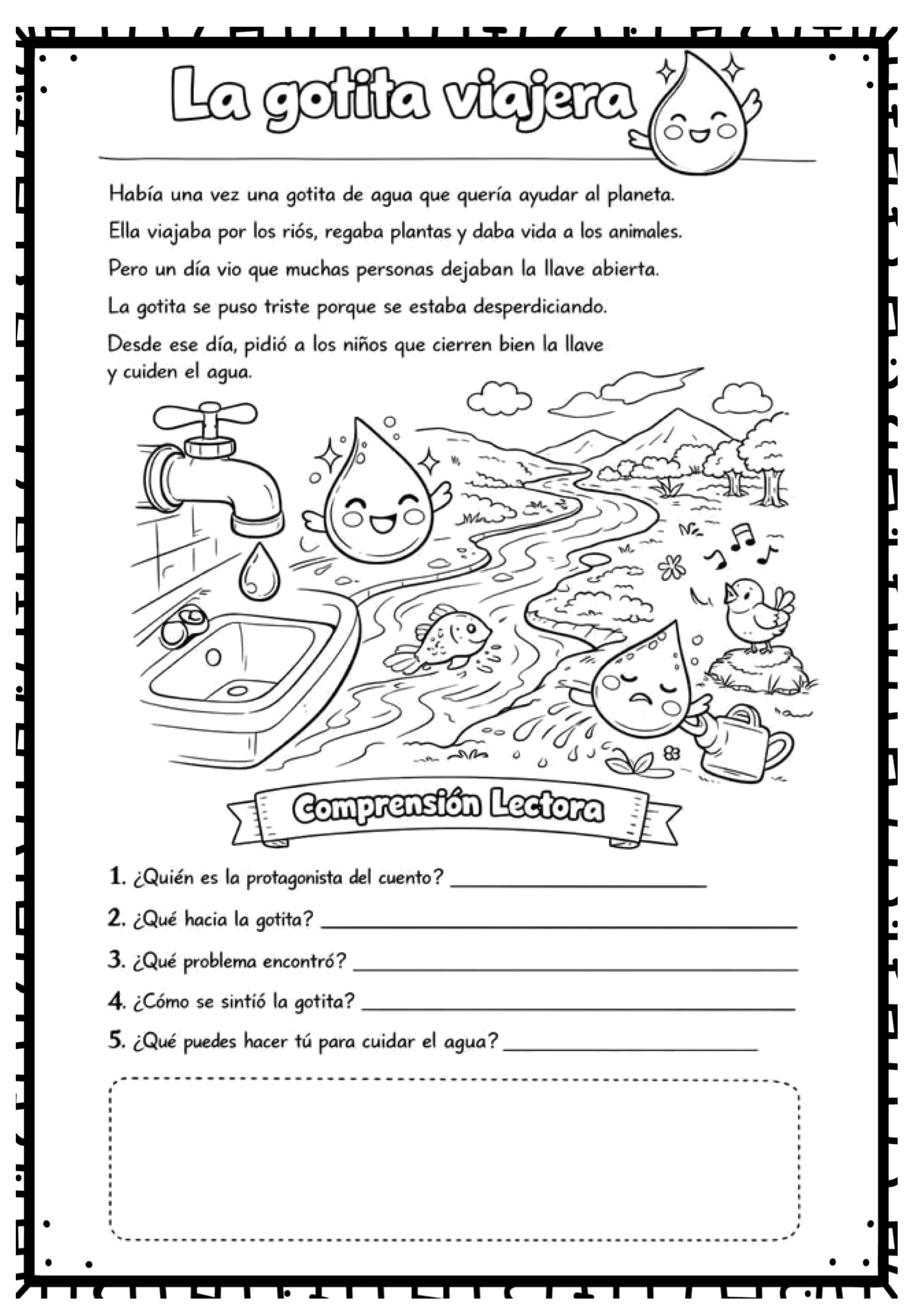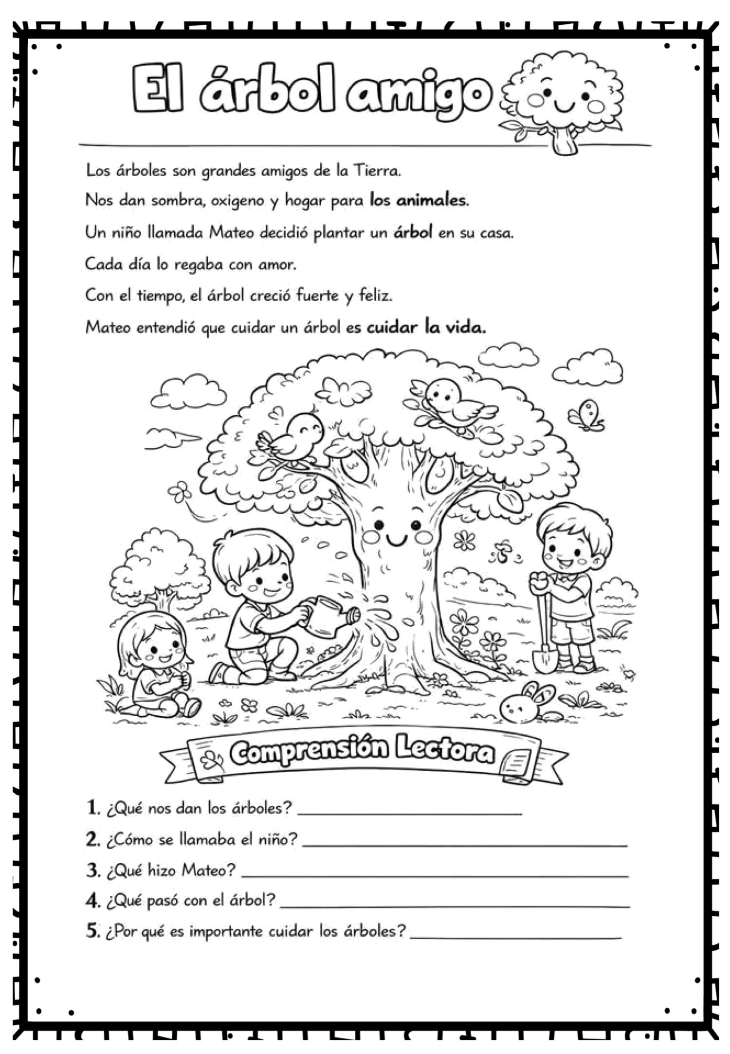 Cada ficha presenta una historia sencilla acompañada de actividades de comprensión que ayudan al alumnado a leer, pensar y actuar.