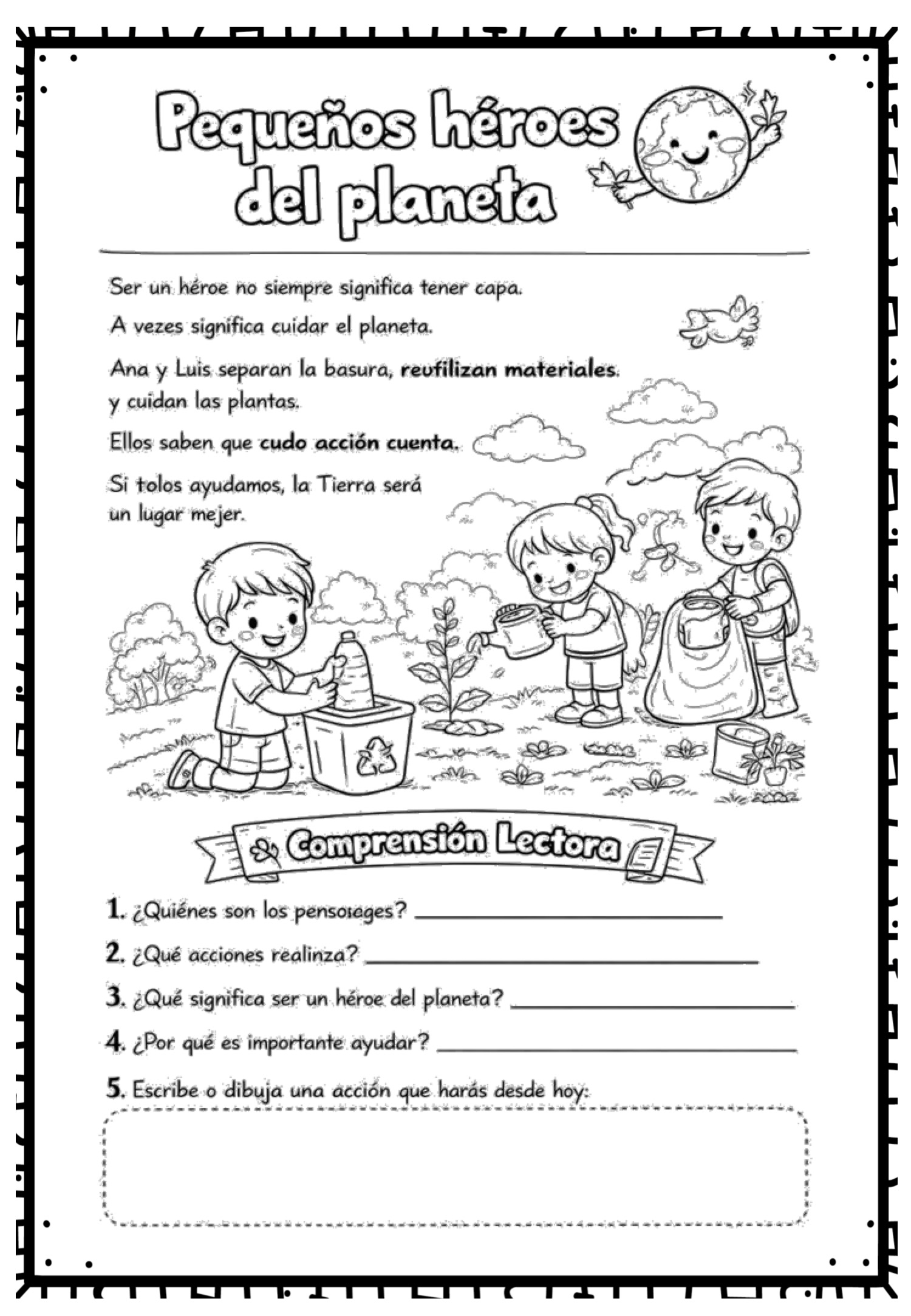 El Día de la Tierra es una oportunidad maravillosa para trabajar la lectura comprensiva mientras fomentamos el amor por el planeta. Estas minilecturas son perfectas para Infantil y Primer Ciclo: textos breves, mensajes claros, ilustraciones motivadoras y preguntas que invitan a reflexionar sobre el cuidado del medio ambiente.