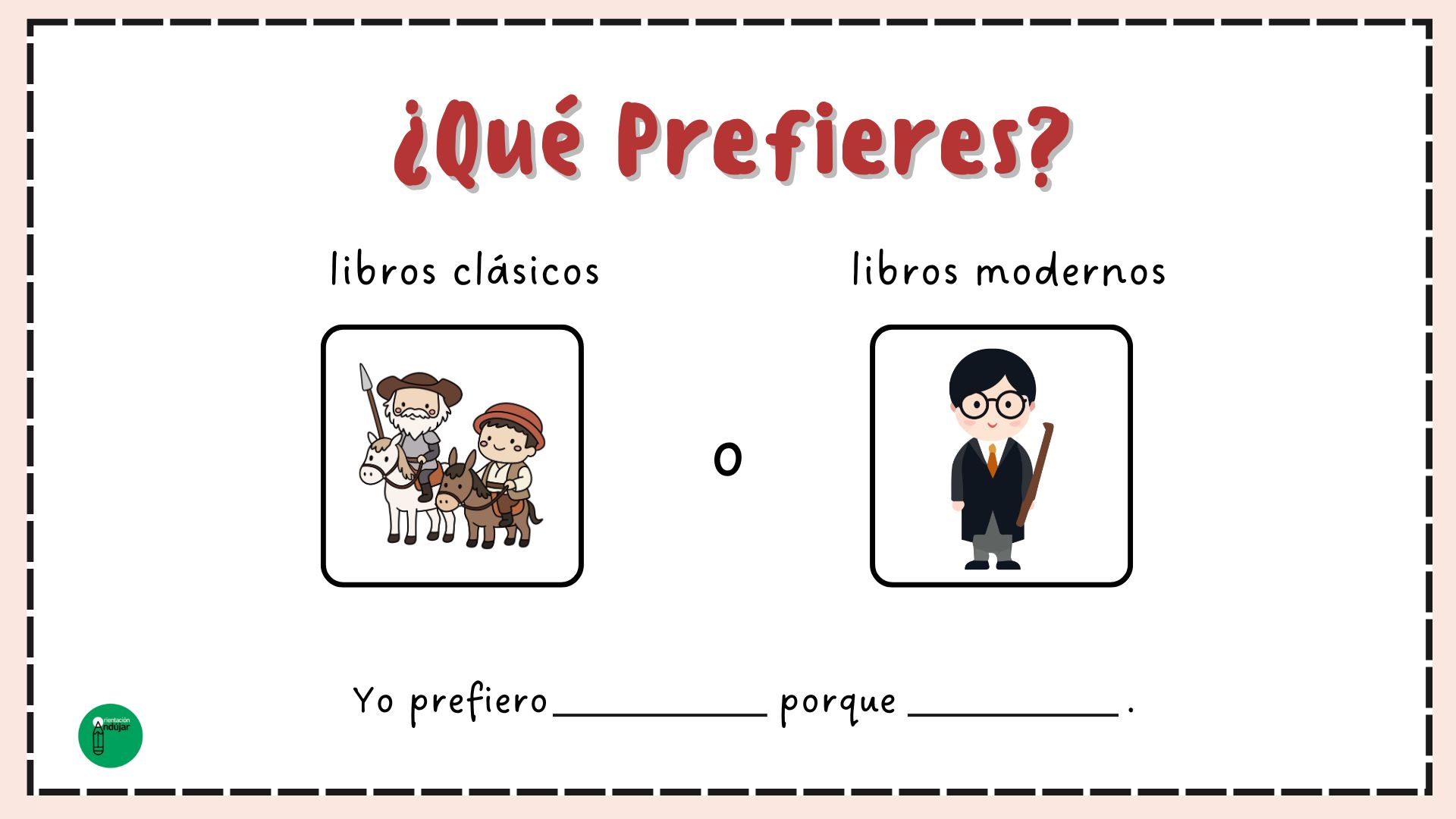 ¡Vuelve uno de los grandes favoritos de nuestra comunidad! Como ya es tradición en el blog, nos encanta rescatar dinámicas que funcionan de maravilla y adaptarlas a las fechas señaladas. Esta vez, hemos transformado nuestra clásica actividad de «¿Qué prefieres?» para celebrar un Día del Libro lleno de debate, risas y, sobre todo, mucha personalidad. Es una forma fantástica de romper el hielo y salir de las actividades más académicas para entrar de lleno en el terreno de la imaginación y los gustos personales de nuestros alumnos.