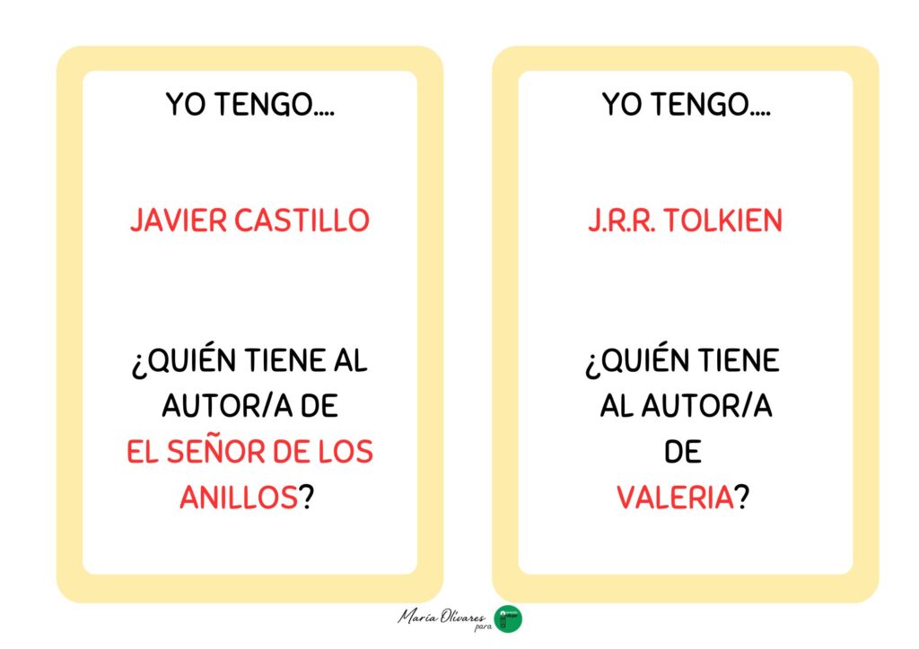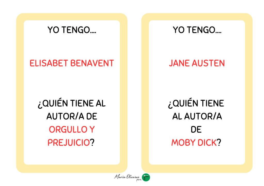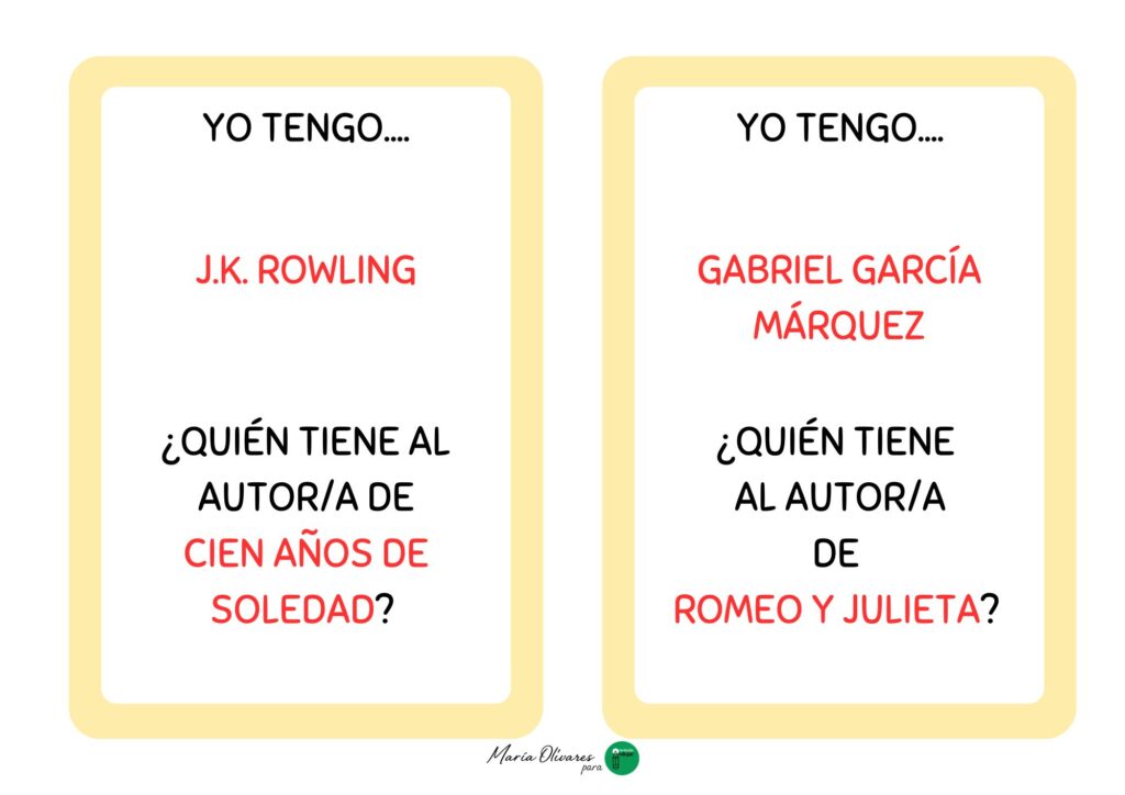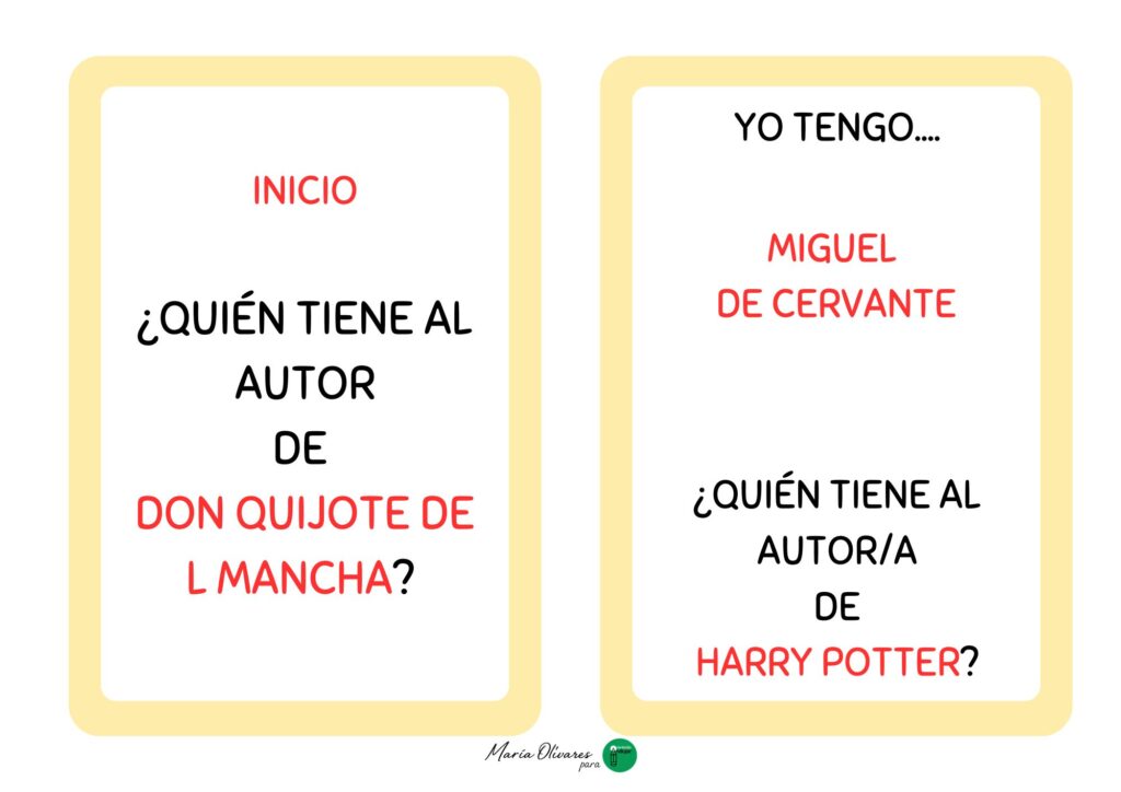 La mecánica es sencilla pero súper adictiva: cada alumno recibe una tarjeta que contiene una respuesta y una pregunta nueva. El juego comienza cuando un estudiante lanza el primer desafío, por ejemplo: «¿Quién tiene al autor de Don Quijote de la Mancha?». En ese momento, todos deben estar muy atentos a sus tarjetas hasta que alguien responda con entusiasmo: «¡Yo tengo a Miguel de Cervantes! ¿Quién tiene a la autora de Harry Potter?». Así, se va creando una cadena ininterrumpida de nombres y obras que solo termina cuando el ciclo vuelve al primer jugador.