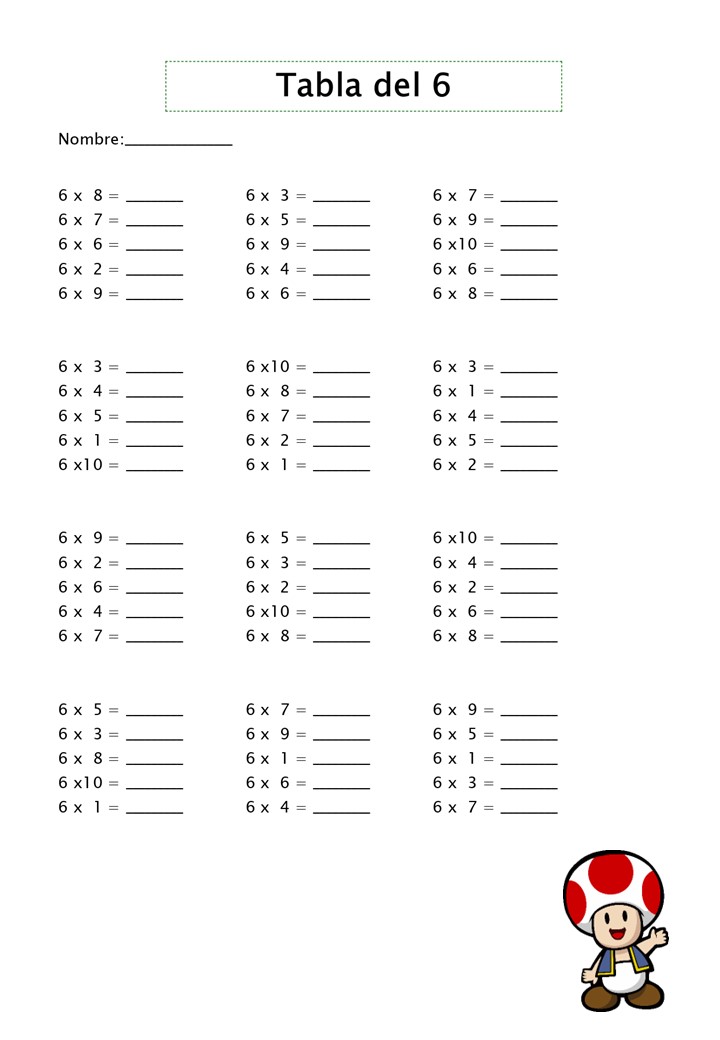 A medida que avanzamos en el aprendizaje de las tablas, la dificultad aumenta y es aquí donde la motivación visual se vuelve un aliado indispensable. Las tablas del 6 y del 7 suelen ser las que más «resistencia» ofrecen a los estudiantes, por lo que utilizar a los héroes y villanos de Super Mario es la estrategia perfecta para mantener el entusiasmo. En estas nuevas hojas de actividades, los alumnos encontrarán ejercicios diseñados para trabajar la memoria lógica y el cálculo rápido, convirtiendo cada multiplicación en un obstáculo superado en el camino hacia la meta.