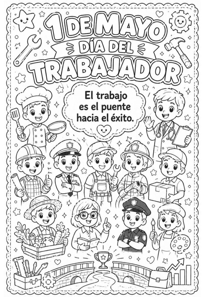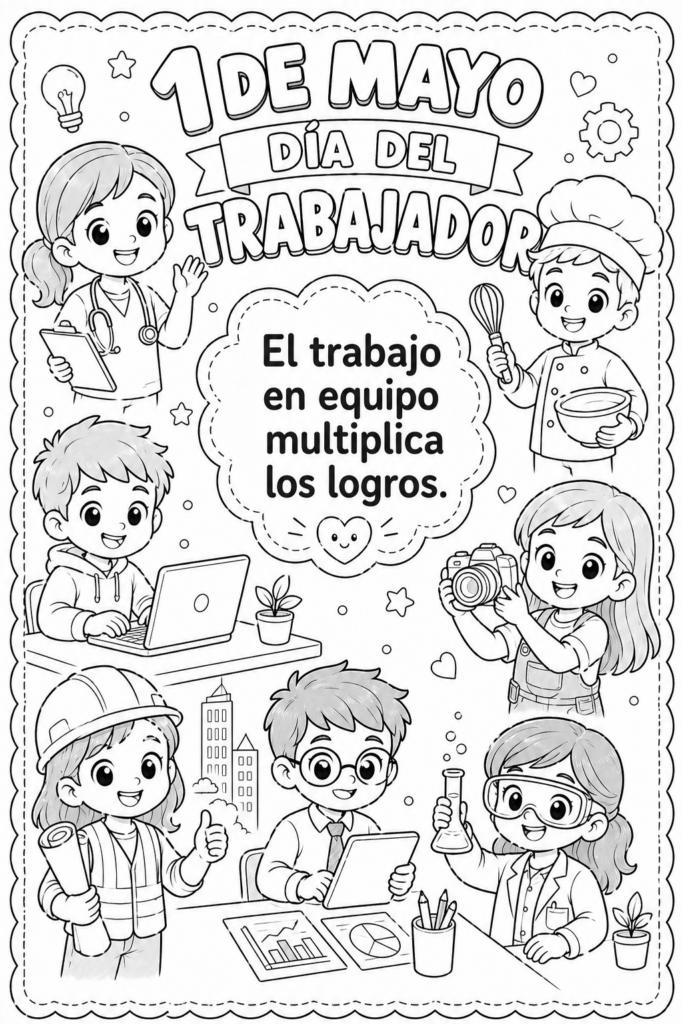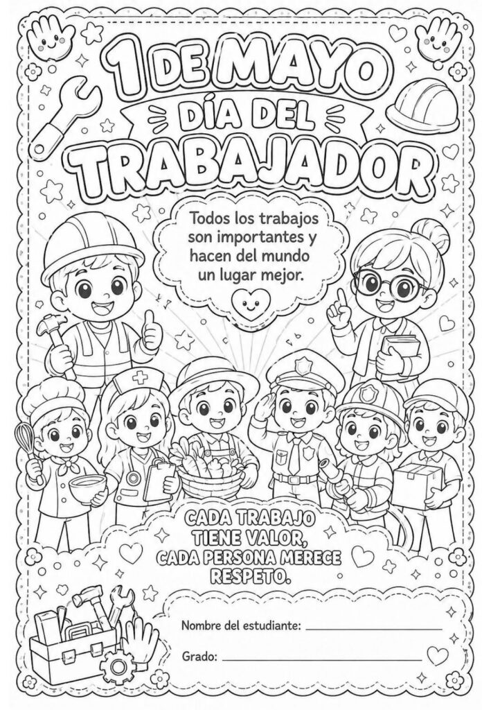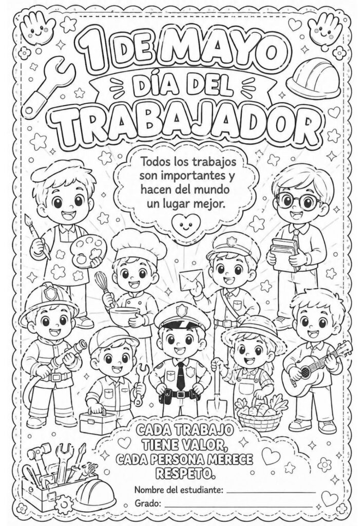 Para acompañar esta celebración, este recurso de láminas para colorear permite reflexionar sobre el valor del trabajo mientras los peques disfrutan de una actividad creativa, tranquila y significativa.