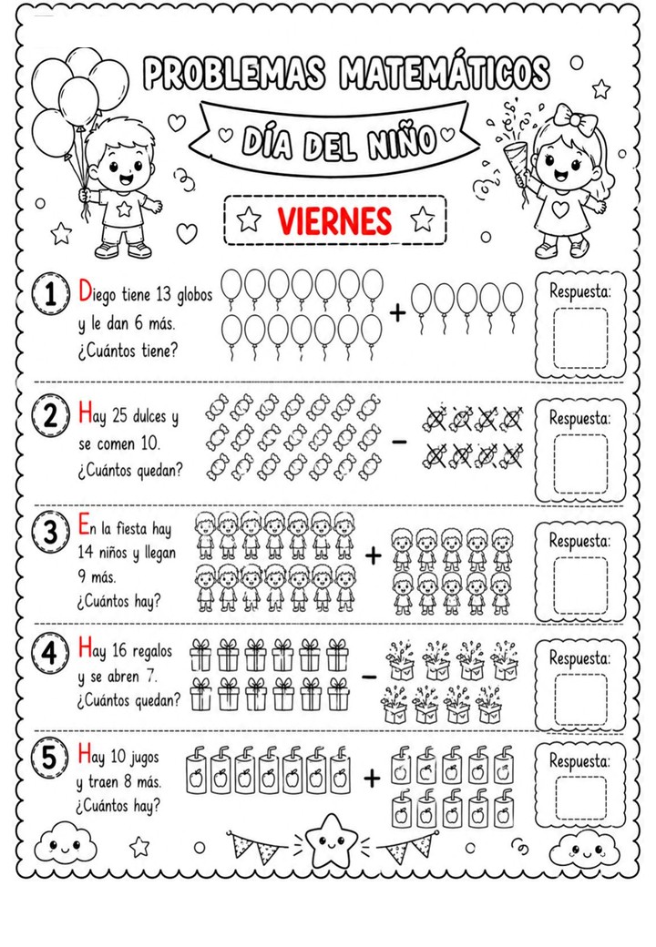 Problemas matemáticos especial semana del niño y la niña