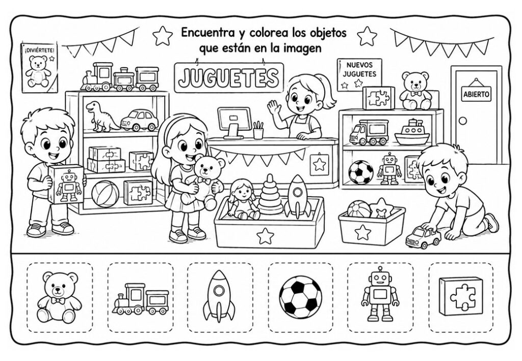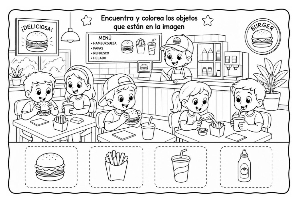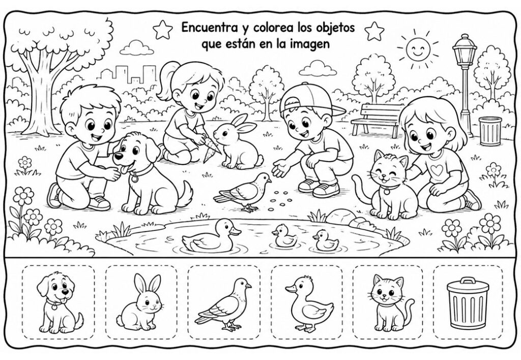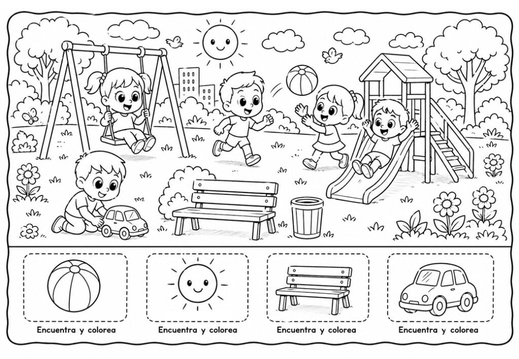 Las actividades de “encuentra y colorea” son una de las formas más efectivas y entretenidas de trabajar la atención, la discriminación visual y la percepción en Infantil y Primaria. Este conjunto de láminas temáticas ofrece escenarios llenos de detalles donde los niños deben buscar objetos específicos y colorearlos, convirtiendo la tarea en un juego que engancha desde el primer momento.