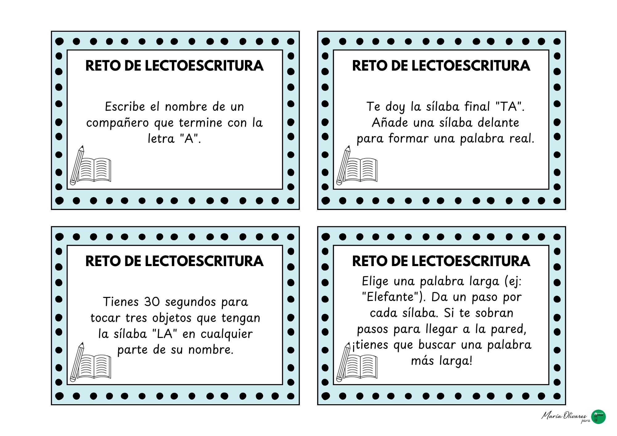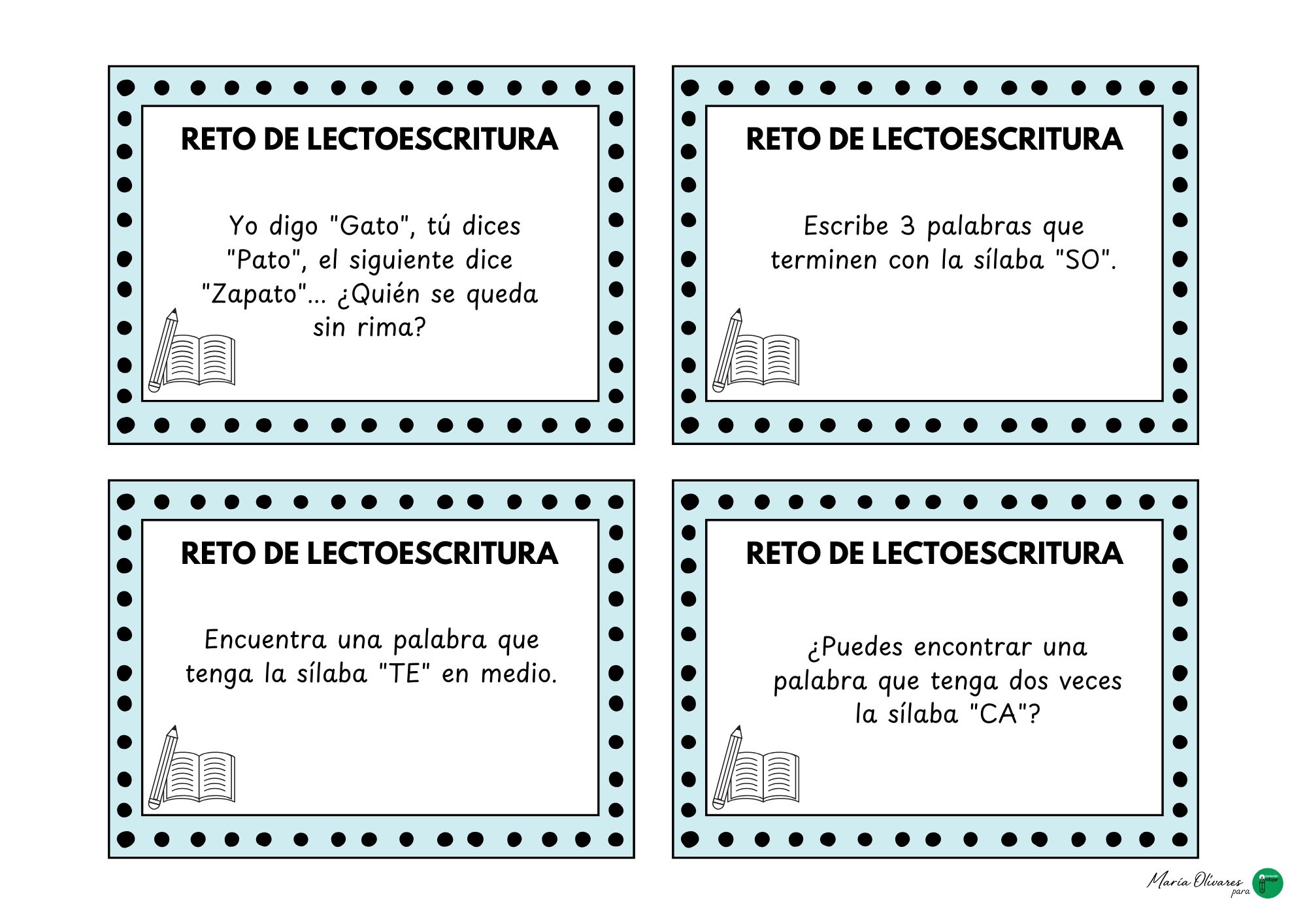 Tarjetitas retos lectoescritura