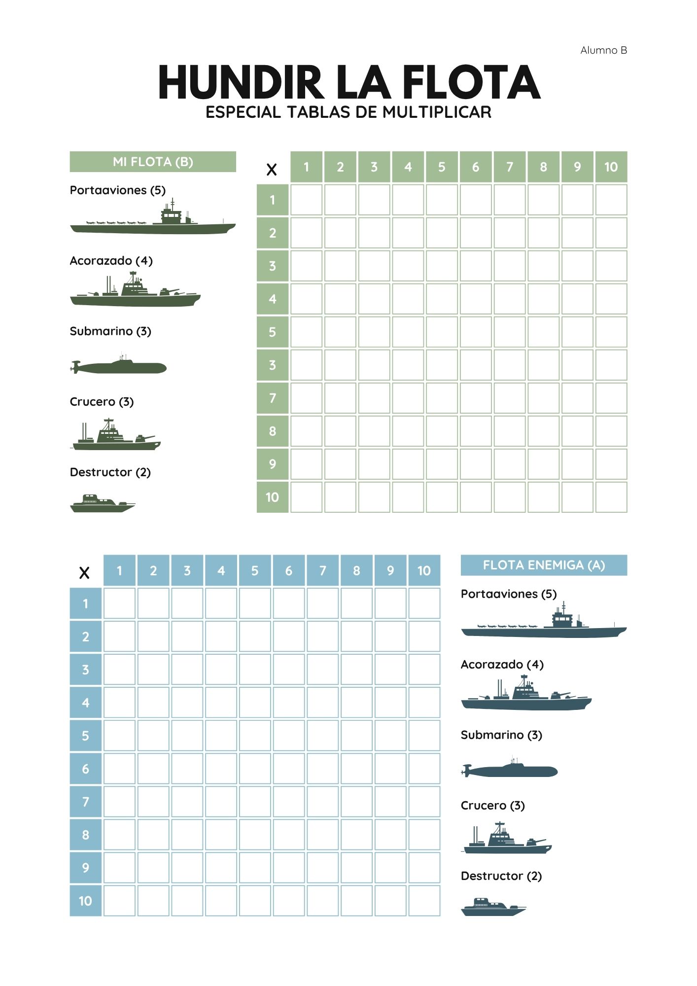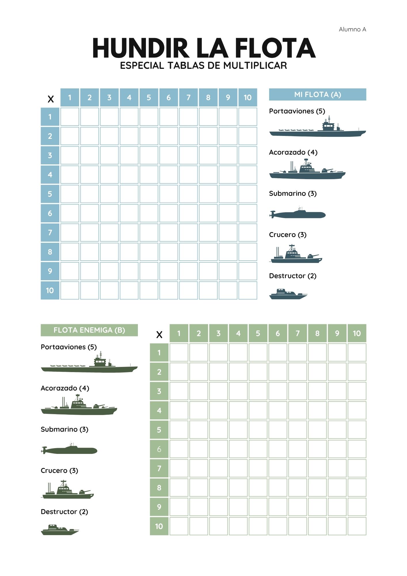 Lo más divertido viene durante el juego. Para «disparar» a un barco enemigo, los alumnos no dicen «B-4», sino que deben cantar el resultado de la multiplicación. El oponente tendrá que buscar ese número en su cuadrícula y comprobar si coincide con la posición de alguno de sus barcos. Este sistema obliga a los jugadores a trabajar constantemente con los resultados de las tablas de multiplicar, reforzando la memoria a corto plazo y la agilidad mental en cada turno. Es, sin duda, un recurso ideal para transformar un contenido que suele ser un poco denso en un desafío competitivo donde ganar depende, literalmente, de saberse las tablas al dedillo.