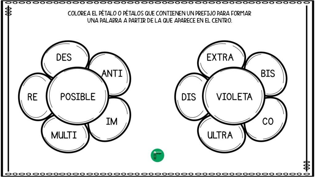 Los pétalos de los prefijos para formar palabras