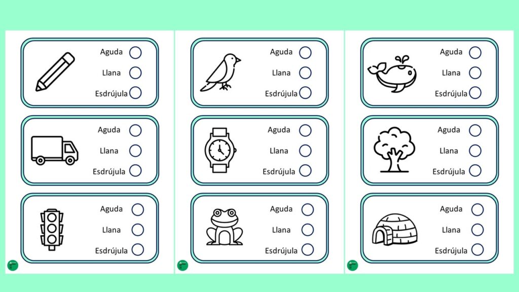 Tarjetas molonas: Tipos de palabras agudas, llanas o esdrújulas